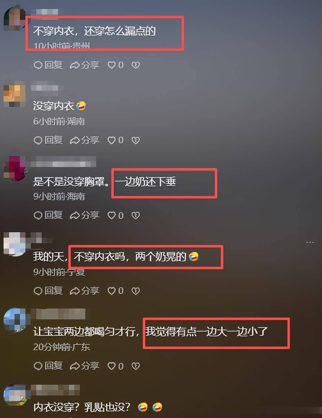 于是,评论区满是“穿个内衣吧、有哺乳内衣、或者贴个胸贴”之类的建议。
